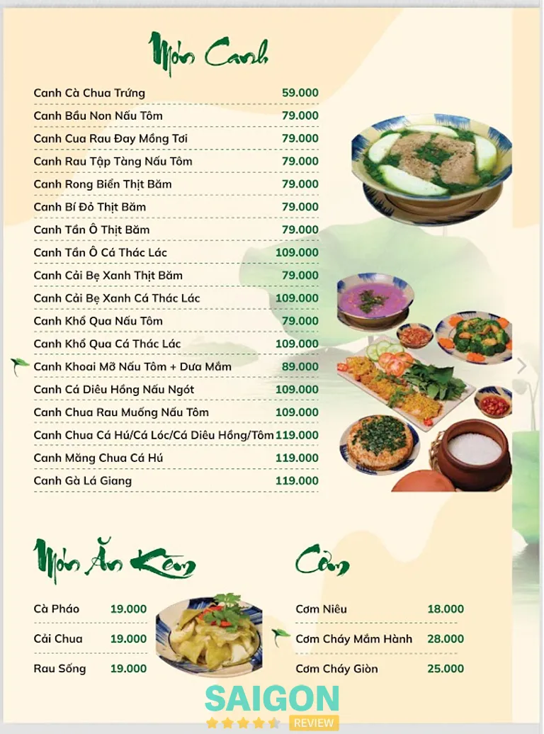 | Cơm | Cơm niêu (1 niêu) | 25.000 – 35.000 |