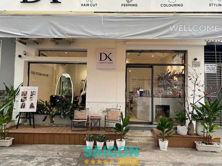 DK Hair Studio nằm ở địa chỉ 53/9 Nhiêu Tứ, phường 7 (nay phường Cầu Kiệu), quận Phú Nhuận, TP. HCM. Salon chuyên các dịch vụ làm tóc cho cả nam và nữ: cắt tóc thiết kế, nhuộm tóc (từ nhuộm công sở đến nhuộm thời trang), uốn/duỗi, phục hồi tóc yếu, nối tóc.