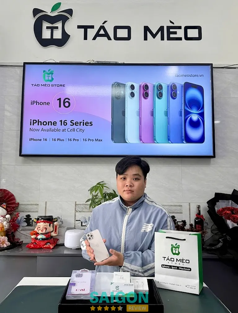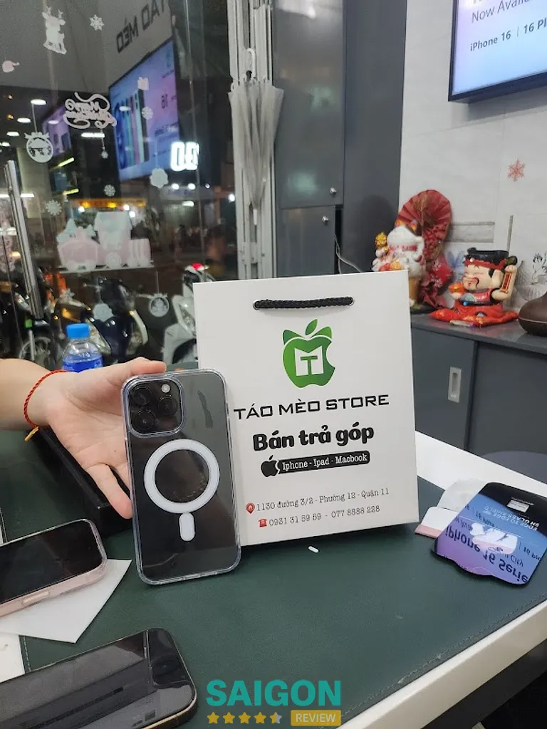 Táo Mèo Store có địa chỉ chính tại 1130 Đường 3 Tháng 2, Phường 8, Quận 11, TPHCM. Nay sau sáp nhập là 1130 Đường 3 Tháng 2, Phường Bình Thới, TPHCM. Táo Mèo Store là một trong những hệ thống bán lẻ iPhone uy tín tại TP.HCM, chuyên cung cấp iPhone quốc tế, máy zin chuẩn — cam kết không hàng lock, không máy dựng — với phương châm “Trung thực – Nhiệt tình – Uy tín – Bền lâu”.