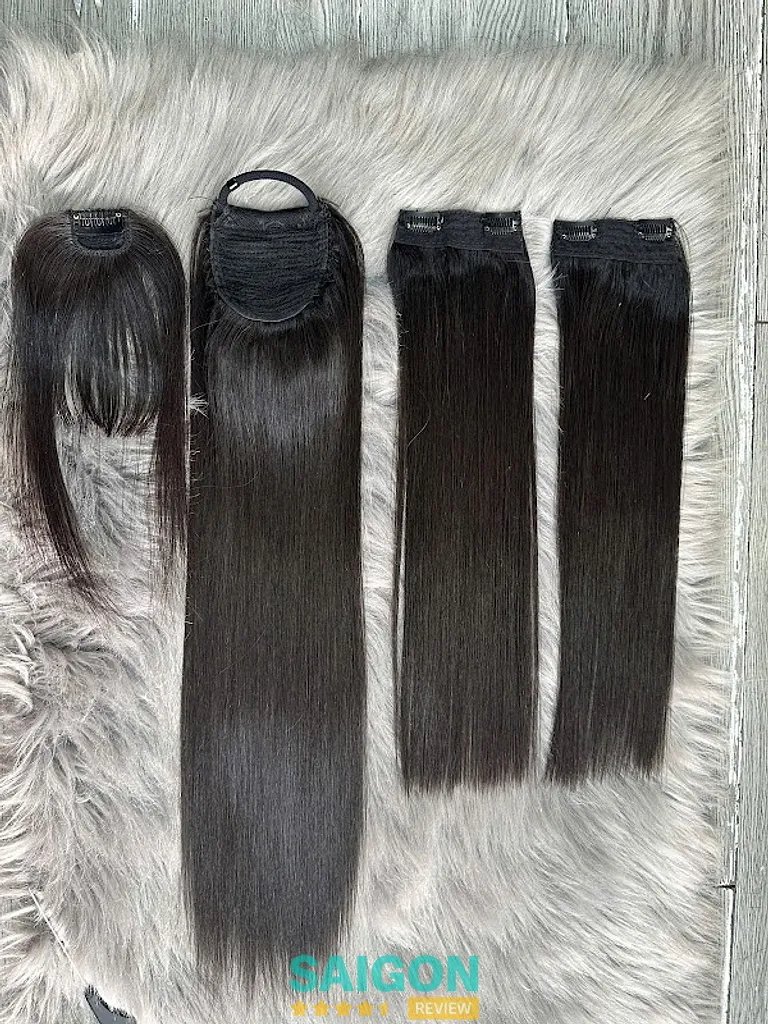 Sản phẩm làm từ tóc thật nên khi kẹp vào hoàn toàn tiệp màu và kết cấu với tóc thật.